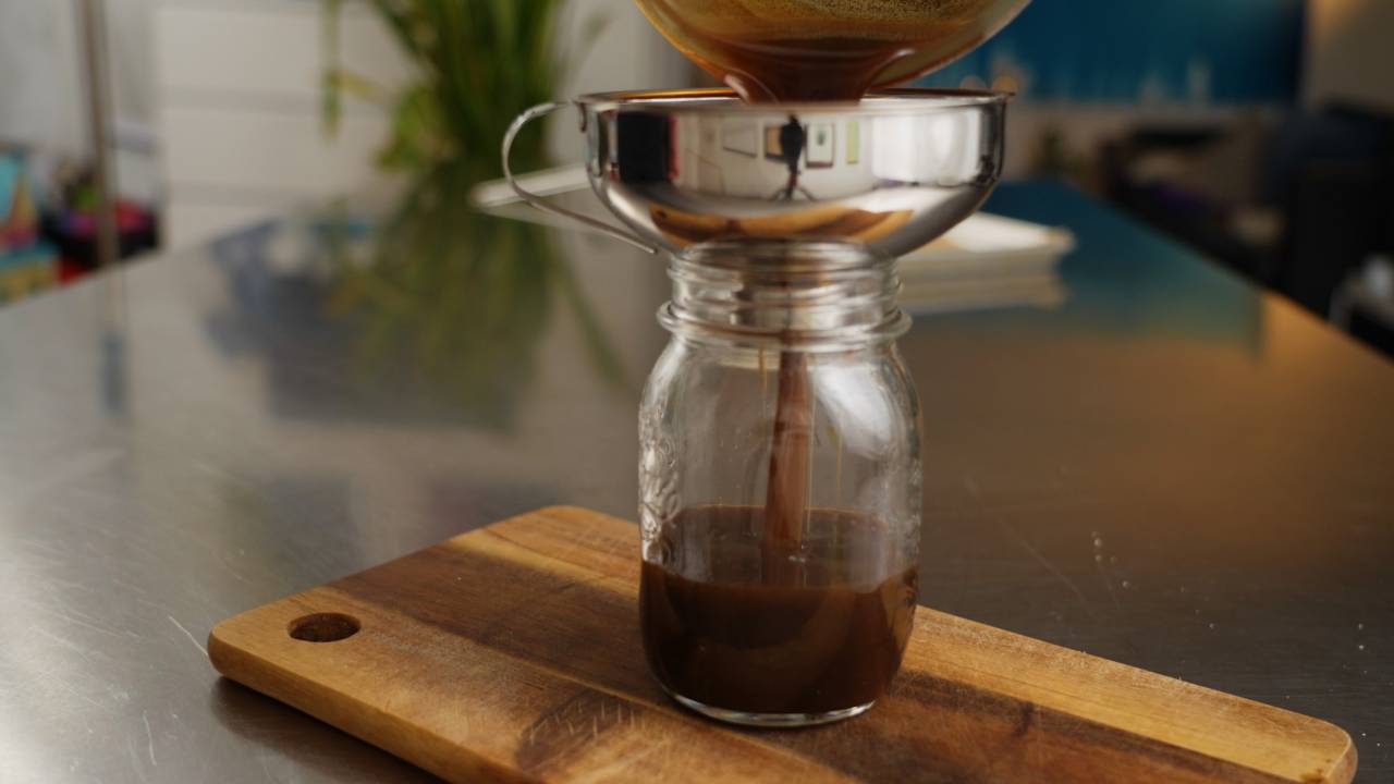 Filtrer evt. gennem en fin si eller kaffefilter hvis du ønsker et klart ekstrakt. Alternativt lad det være korn og stænger i flasken — smagen udvikler sig med tiden.